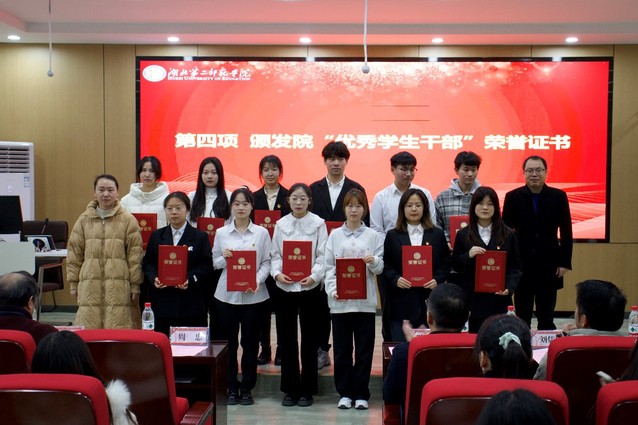 与会领导为学院“先进集体”“综合素质优秀大学生”“优秀学生干部”颁发荣誉证书。优秀学生代表蒋怡菲在发言中号召全体化生学子结合自身专业知识勇于创新,锐意进取,共同营造良好的校园科学文化氛围,以实际行动树立优良学风。