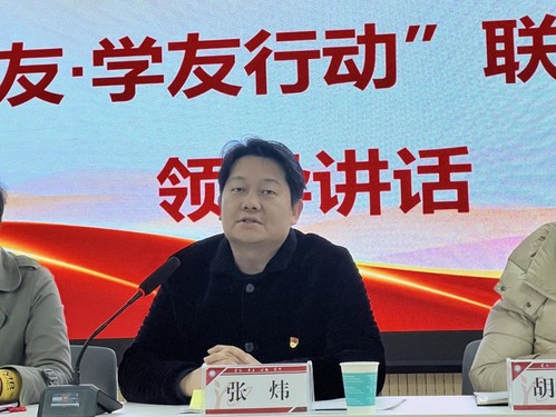 外国语学院院长刘晖介绍“师友·学友行动”工作方案。他希望通过师生互动、学友互助的方式,提升学生的学习积极性和学习效果,加强师生之间的联系和交流。