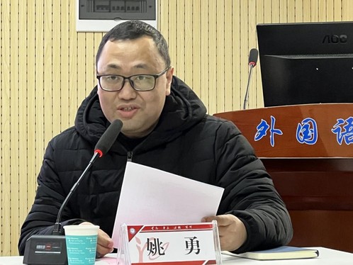 外国语学院分党委副书记姚勇介绍了学院学风建设情况。学生代表李睿鑫作表态发言。