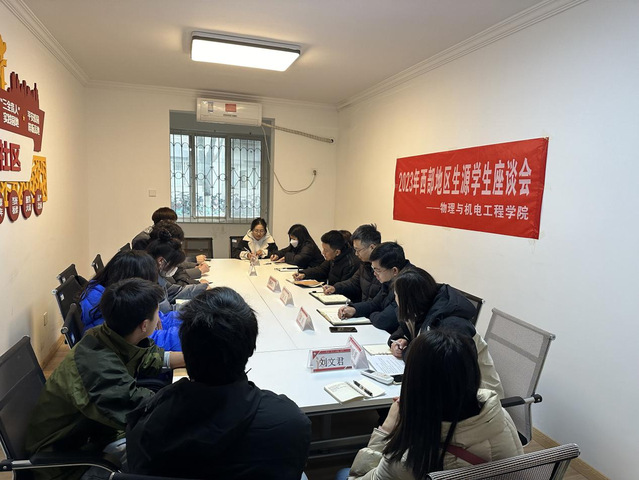 本网讯(通讯员 刘诗怡 摄影 陈若曦)为了解西部地区生源学生在校学习生活情况,更好的服务学生成长,12月13日中午,物理与机电工程学院(以下简称“物机学院”)在西三“一站式”学生社区驿站举办西部地区生源学生座谈会。物机学院党委书记吴田、党委副书记陈扬、副院长吴建兵、辅导员刘文君、刘方芳、廖雨彤及西部学生代表参加座谈会。学工办主任冯媛媛主持会议。
