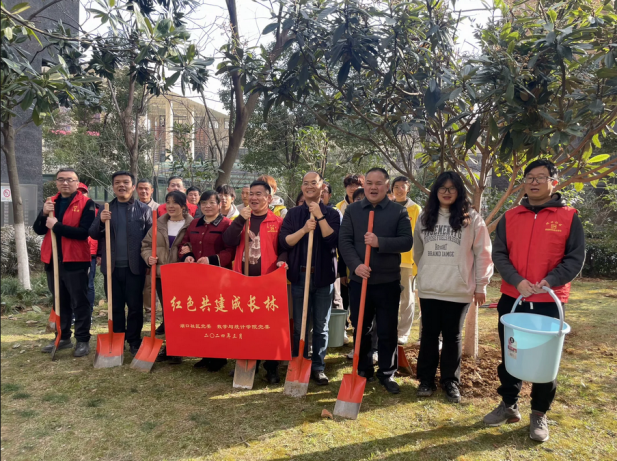 本网讯(通讯员梁起萍)为进一步学习和弘扬雷锋精神,树立和践行绿水青山就是金山银山理念,做好党建引领,生态共建工作,3月8日,湖北第二师范学院数学与统计学院(以下简称数统院)联合湖口社区和辖区丽岛物业等共建单位共同开展了“春种秋香”植树节主题活动。湖口社区党委书记肖平,数学与统计学院党委副书记严国涛,学工办主任余江涛,数学与应用数学专业负责人王成,辅导员张贝贝,以及数统院志愿者和麦田乐恩家园的小朋友参与本次活动。