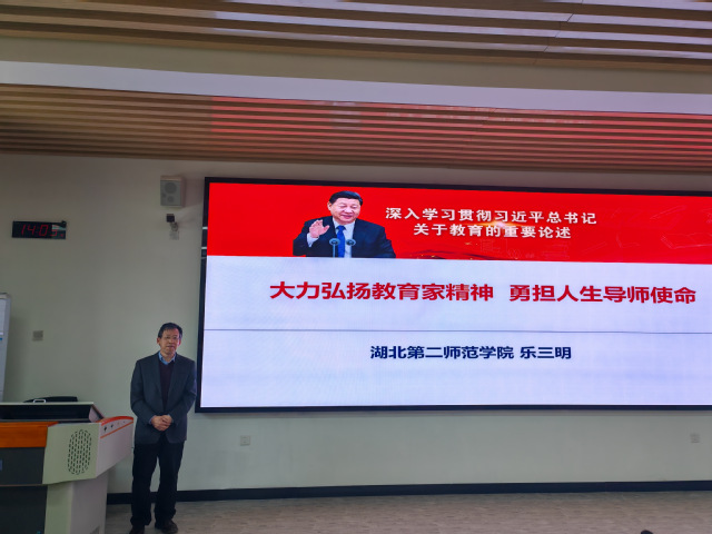 乐三明从我校校训中的教育之道入手,对教育的三大属性进行了深入解读。他提出教育的三大属性不仅是中国教育家的精神底色,更是中国教师在教育事业中的独特体现。他还提炼了辅导员工作中的“十要”策略和“三勤”作风及“五面”思维,为辅导员的工作指明了方向。