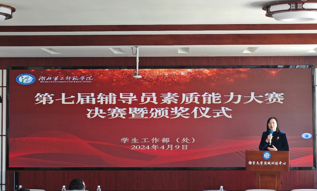 本网讯(通讯员 金琰)4月9日下午,我校在文学院1301报告厅举办2024年第七届辅导员素质能力大赛决赛暨颁奖仪式,学生工作部(处)部长文敏出席,活动由学生工作部(处)副部长张敏主持。