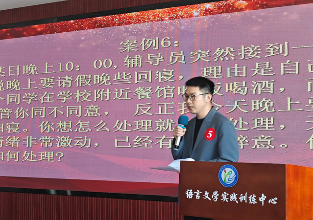 来自8个学院的12名辅导员结合自身工作,分别进行了案例分析和谈心谈话的比拼,展示出我校辅导员队伍扎实的职业素养、灵活应变能力和高度的敬业精神。