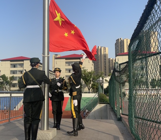 活动伊始,学校狼牙精英连国旗班成员举行庄重的升国旗仪式,全体师生肃立,向国旗行注目礼。