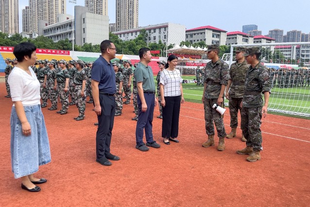 本网讯(通讯员 薛海阳)金风送爽,丹桂飘香,外国语学院迎来了2024级新生军训的飒爽英姿。在这个充满活力与挑战的季节里,为了深入了解新生军训生活,传递学院关怀与期望,9月14日上午,外国语学院党委书记胡崇芝、院长刘晖及新生辅导员等一行深入军训现场,看望并慰问了正在进行紧张训练的新生和教官们。
