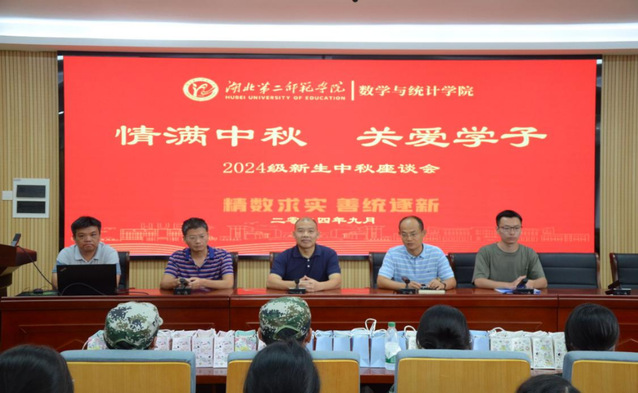 本网讯(通讯员 秦媛媛)9月14日,中秋节来临之际,数学与统计学院在十号楼二楼会议室开展新生中秋座谈会,为新生送上节日温暖。数学与统计学院党委书记林志红,党委副书记严国涛,副院长吴新林,学工办主任余江涛,辅导员田颖参与座谈会。