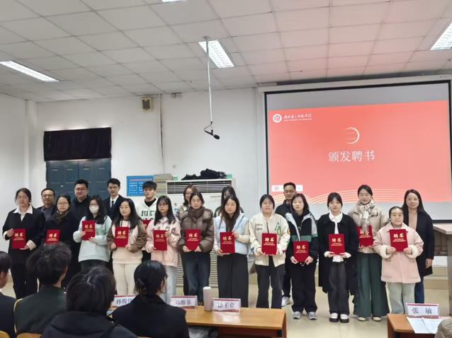 会上,全体成员一同回顾了大学生事务服务中心一年的工作。现场各部门指导老师为大学生事务服务中心第二届学生干部颁发聘书。