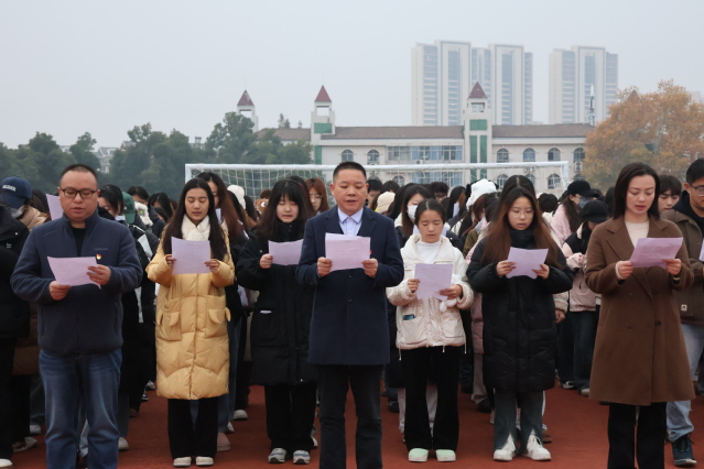 本网迅(通讯员 马爱霞)12月4日上午,马克思主义学院于中区田径场举行“‘宪’在我心,与‘法’同行”主题升旗仪式暨2024年“宪法晨读”活动,马克思主义学院党总支书记金殿中,党总支副书记李佳,学工办主任樊勇,2022级、2023级、2024级思想政治教育全体学生参与活动。