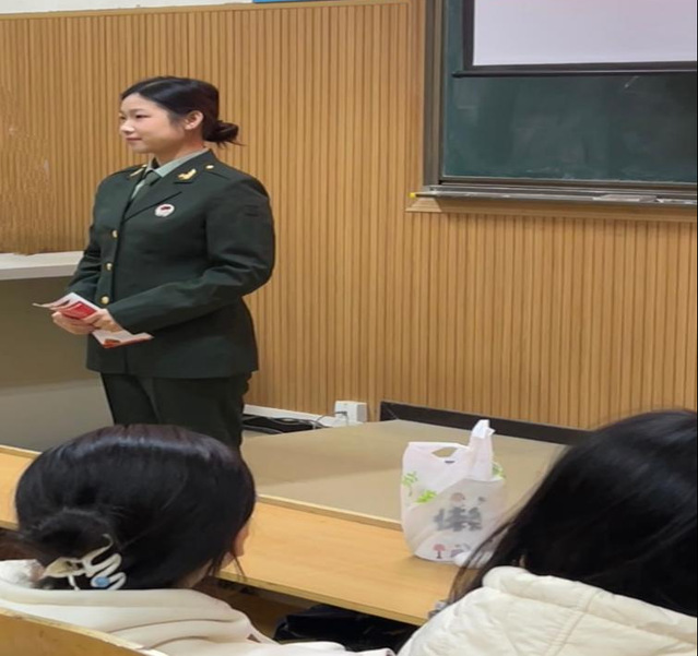 活动现场吸引了众多学生的积极参与,座无虚席。潘思远同学现场讲解了入伍条件及流程,她从自身入伍经历出发,详细介绍了自己丰富多彩的军营生活以及在军队中的成长、变化与收获。用自己的切身体会告诉大家,参军不仅是一种荣誉,更是一种责任和担当,使同学们对军旅生涯有了更深层次的了解。