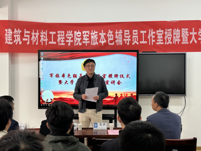 本网讯(通讯员 陈凌云)12月5日下午,建筑与材料工程学院举行2024年“军旅本色”辅导员工作室授牌暨大学生退伍政策宣讲会,副校长吕辉出席并讲话。学生工作部、人民武装部及学院主要负责人,建筑与材料工程学院全体退役大学生士兵参加会议。
