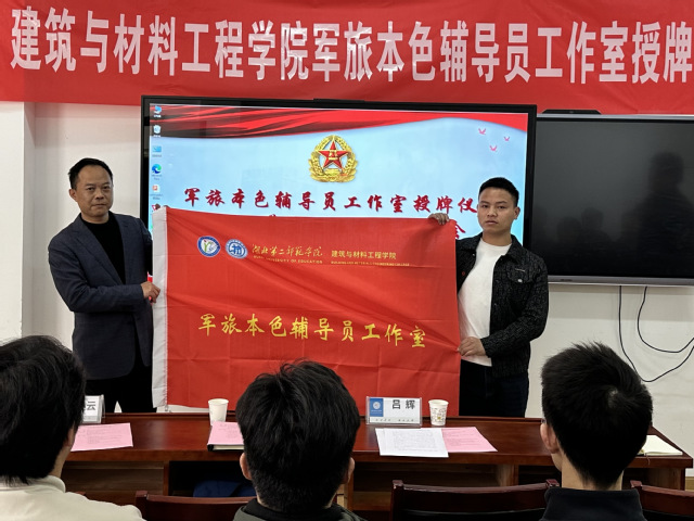 本网讯(通讯员 陈凌云)12月5日下午,建筑与材料工程学院举行2024年“军旅本色”辅导员工作室授牌暨大学生退伍政策宣讲会,副校长吕辉出席并讲话。学生工作部、人民武装部及学院主要负责人,建筑与材料工程学院全体退役大学生士兵参加会议。