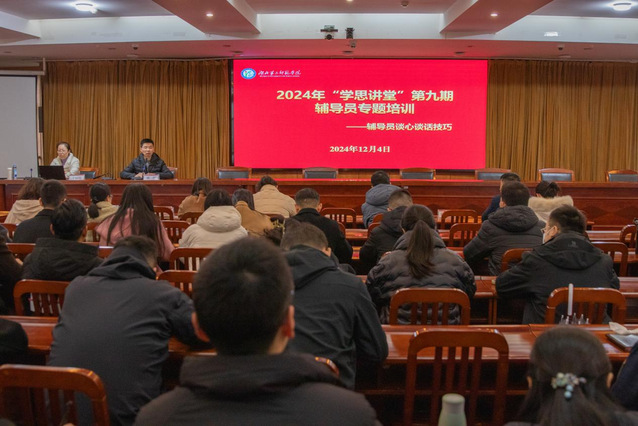 本网讯(通讯员 郑婧)为提升辅导员专业素养与工作技能,12月4日,学生工作部(处)在行政楼五号会议室面向全体辅导员举办了“学思讲堂”第九期辅导员专题培训。培训邀请了华中师范大学心理健康教育中心副主任、副教授于丽霞,以“辅导员谈心谈话技巧”为题进行讲授,学生工作部副部长刘兴主持培训会。