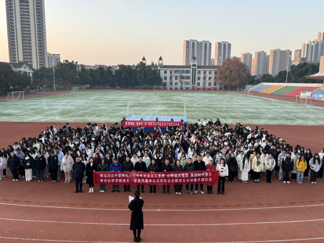 本网讯(通讯员 刘畅)12月16日上午,教育科学学院(以下简称“教科院”)在学校田径场隆重举行“师友·学友”共建单位支部联合主题党日暨升国旗主题教育活动。本次活动以“学习习近平新时代中国特色社会主义思想 心怀远大理想 勇担时代重任”为主题。学校党委委员、副校长张红梅、“师友·学友”共建单位领导、学院领导、辅导员、学生党员、积极分子、团校学员、2024级新生参加活动。