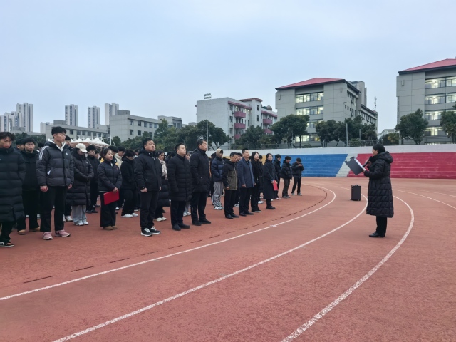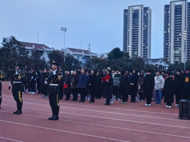 国旗飘扬,国歌嘹亮。活动伊始,全体参会人员在庄严的国歌中注视着庄严的国旗在护旗队的整齐的正步声中缓缓登上国旗台,并缓缓升起,在寒风中飘扬着,展示着那一抹生生不息的中国红。