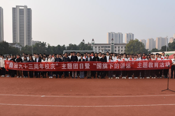 本网讯(通讯员 阳奕)11月2日,恰值学校校庆日,由物理与机电工程学院(简称“物机学院”)承办的校庆日主题升旗仪式在学校田径运动场国旗台举行,副校长吕辉出席活动。