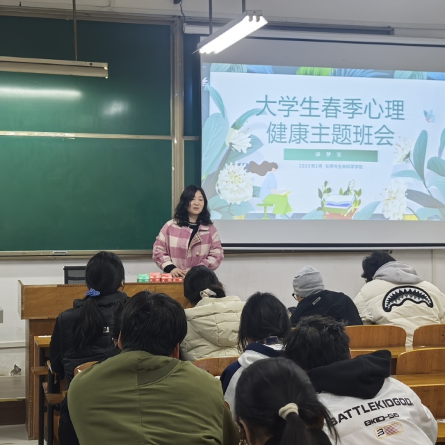 本网讯(通讯员 王慧 邱梦莹)为了增强大学生的心理健康意识,提高心理调适能力,促进学生全面发展和健康成长,3月11日到12日,化学与生命科学学院2024级各班开展以“关注心理健康,共筑美好未来”为主题的班会活动。本次班会由辅导员邱梦莹、黄世杰,班主任翁方青指导。