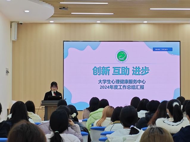 大学生心理健康服务中心主席团负责人鞠司愉2024年度心服中心的各项工作进行了汇报
