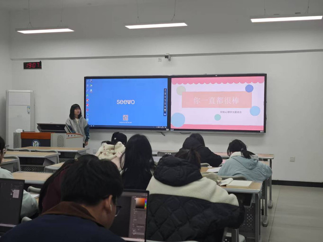 班会聚焦大学生常见心理议题,通过案例分析探讨了学业压力、人际交往、恋爱心理等现实问题,并结合趣味测试,剖析行为背后的心理特征,帮助同学们提升自我认知。心理委员提醒大家:“同学们要学会合理有效的应对方式并及时寻求同辈及家人的支持。”此外,班会还详细介绍了校心理健康教育与咨询中心咨询预约渠道,鼓励同学们在遇到困扰时,可以寻求专业的帮助。