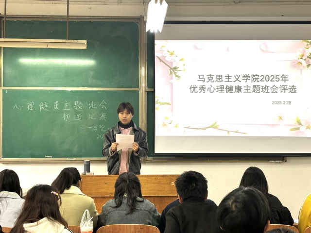 本网讯通讯员 蔡佳怡)为进一步加强大学生心理健康教育工作,提升心理健康知识普及的质量和效果,更好促进学生心理素质发展,马克思主义学院于328日中午在2206教室举办优秀心理健康主题班会比赛学工办主任樊勇参加并担任评委,2024级思想政治教育1班从仁俊主持本次活动