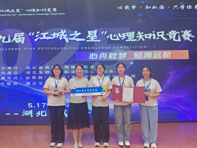 本网讯(通讯员 杨宇涵)2025年5月15日,由湖北省高校心理健康联合会主办,湖北生物科技职业学院承办的第十九届“江城之星”心理知识竞赛圆满落下帷幕。本次竞赛以“心舟载梦,知海远航”为主题,旨在提升大学生心理健康知识水平,增强心理健康意识。我校心理健康教育与咨询中心组织的“不虚此‘心’队”在此次竞赛中荣获三等奖。