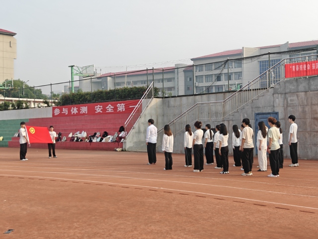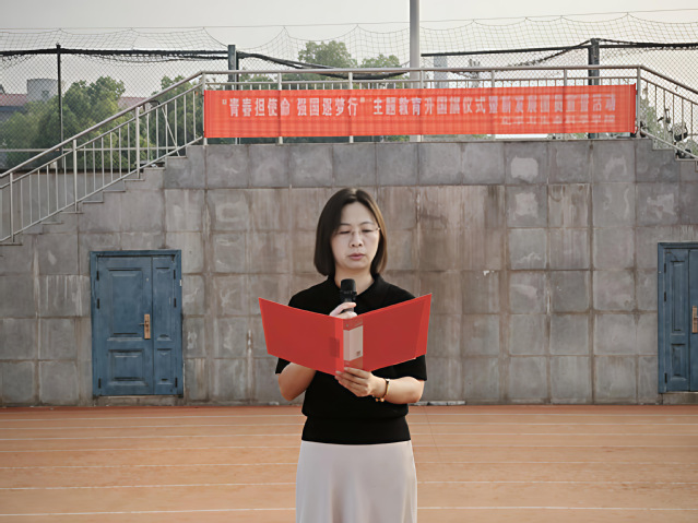 7时许,随着激昂的《义勇军进行曲》响起,升国旗仪式正式开始。师生们注视着五星红旗冉冉升起,在熠熠晨光中迎风飘扬。17名新发展团员们迎着朝阳,在团旗下庄严宣誓。接着,24级新发展团员代表杨可欣,考取华中科技大学研究生、21级毕业生代表王文婷分别发言,激励着同学们在青春赛道上奋力奔跑,争做时代先锋。