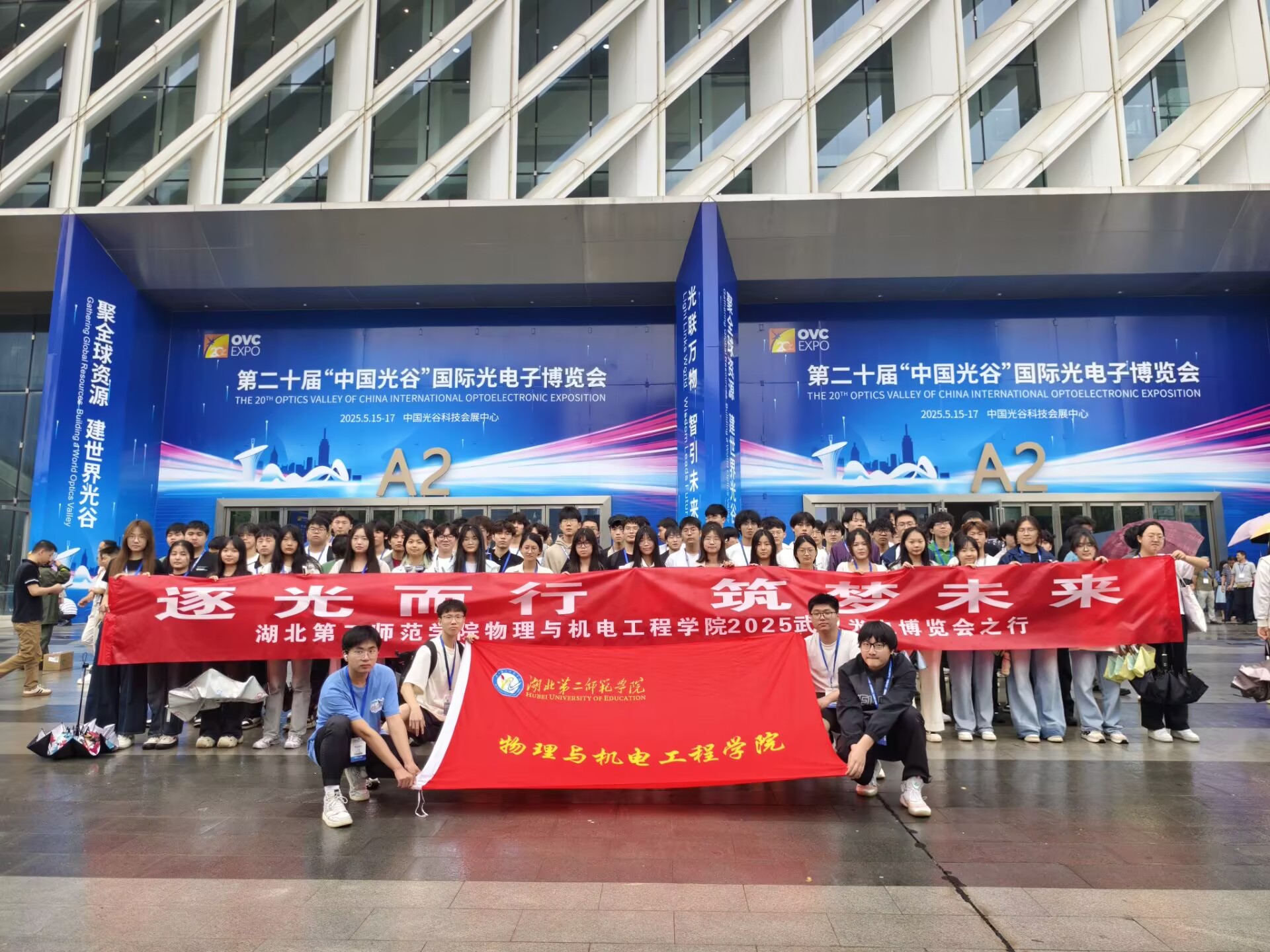 本网讯(通讯员 金琰)为深化“读懂中国、读懂荆楚、读懂光谷”系列教育活动,5月15日下午,物理与机电工程学院组织“一站式”创新笃行学生社区的24级学生代表及思政育人队伍、学业导师等前往中国光谷科技会展中心参观第二十届“中国光谷”国际光电子博览会。