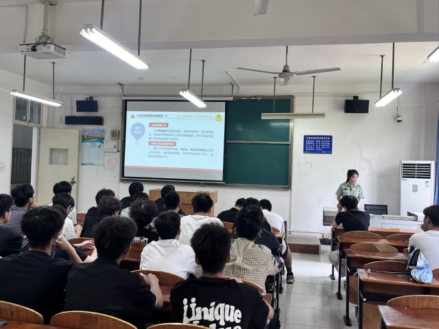 学工办主任樊勇老师做最后总结发言。他首先对学院秋季征兵工作进行全面动员部署,强调大学生参军入伍不仅是个人实现人生价值的重要途径,更是新时代青年学子响应国家号召、为国防事业贡献力量的使命担当。樊勇老师以详实的数据和生动的案例,向同学们阐述了当前我国国防建设的重要性和紧迫性,鼓励大家将个人理想融入国家发展大局。
