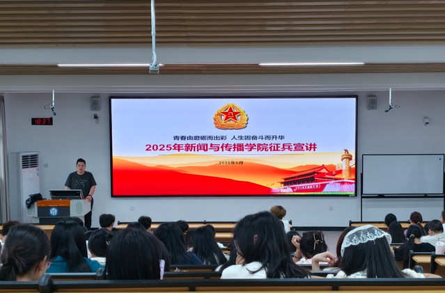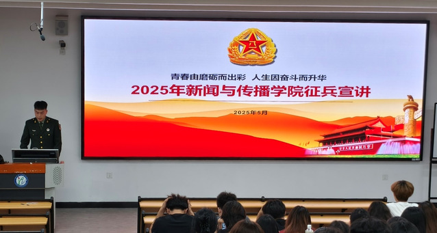 本网讯(通讯员 熊晶星)为积极响应国家征兵号召,激发青年学子的爱国热情,5月28日晚,新闻与传播学院(以下简称“新传院”)于博雅楼320教室展开“青春由磨砺而出彩,人生因奋斗而升华”征兵宣讲活动。本次活动由新传院征兵工作负责老师黄欢主持,2024级学生代表参加。