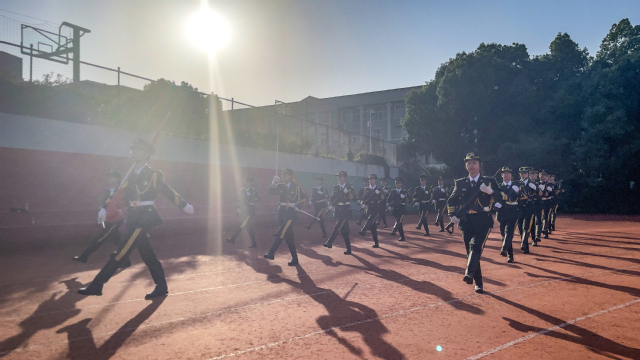 7时整,升国旗仪式正式开始。校国旗护卫队迈着铿锵有力的步伐护送国旗走向升国旗台,晨光中,队员们身姿挺拔、眼神坚毅,整齐划一的动作彰显着青年学子对国旗的敬畏。随着《义勇军进行曲》奏响,五星红旗冉冉升起,全场师生肃立行注目礼,齐声高唱国歌。嘹亮的歌声回荡在操场上空,激荡着每一位在场者的爱国情怀。