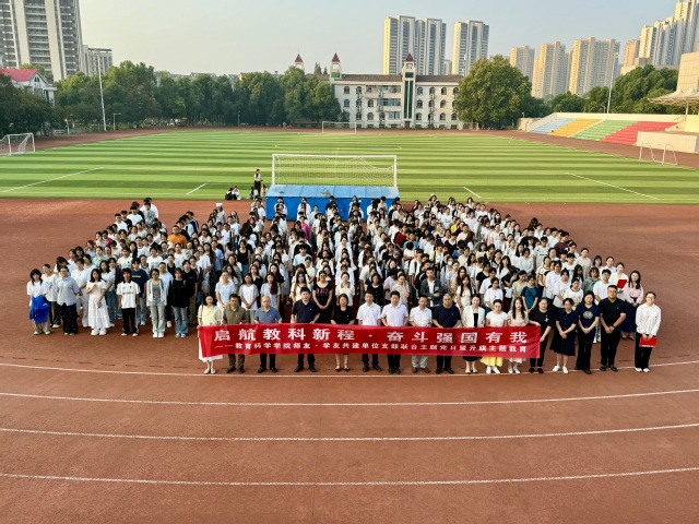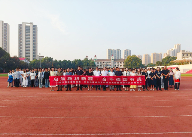 本网讯(通讯员 宋瑾)10月9日上午,教育科学学院(以下简称“教科院”)在学校田径场隆重举行“启航教科新程·奋斗强国有我”国旗下讲话主题教育活动。校党委常委、副校长张红梅、教务处处长刘永存、教师教育学院院长王勇、教务处副处长杨鹤、副处长李娜及教育科学学院领导班子、辅导员与学生代表参加。