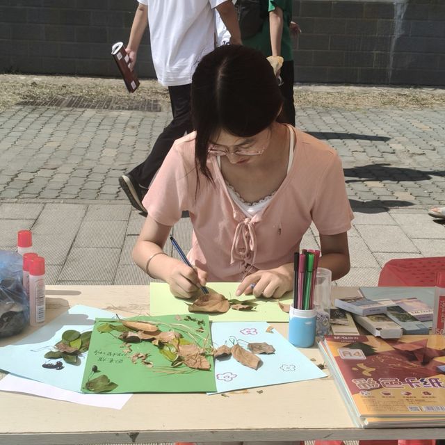 活动紧扣“叶绘秋意,心向美好”主题,将心理调适融入秋叶创作的趣味实践。手工制作区成为情绪释放的“心灵驿站”。“专注拼贴树叶的时候,完全忘了烦恼!”来自25会计学2班的谭芸涵同学举着自己的“秋日心境图”笑道。现场陈列的百余件作品,成了秋日校园里一道充满温度的“心灵艺术风景线”。