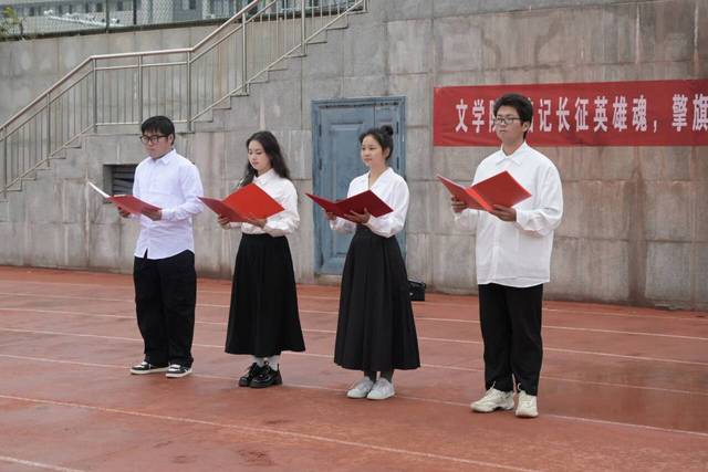 活动中,2025级学生代表张梦阳等4名同学结合长征精神进行主题朗诵。他们用富有感染力的声线再现红军长征途中“飞夺泸定桥”“过雪山草地”等震撼场景,将“不怕牺牲、坚韧不拔”的长征精神融入字里行间。
