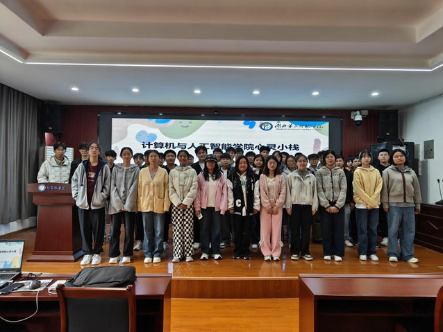本网讯(通讯员 焦彦超 邓富泽为了广泛开展心理健康科普宣传和健康教育,推动心理健康服务从学院层面下沉至班级、宿舍,2025年10月20日,大学生心理健康服务中心计算机与人工智能学院分部在S4210教室举行“心灵小栈”主题活动,为同学们搭建起释放情绪、获取支持的专属平台。