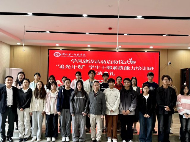 本网讯(通讯员 陈可昕 陈申泰)为进一步加强学风建设,筑牢优良学风根基,营造求真务实的学习氛围,11月5日中午,教育科学学院(以下简称“教科院”)举行2025年学风建设活动启动仪式暨“追光计划”学生干部素质能力培训班开班典礼。本次活动由李治玉主持,教科院分党委书记乐三明、全体辅导员老师及分团委、学生会、志愿者协会全体成员参加。