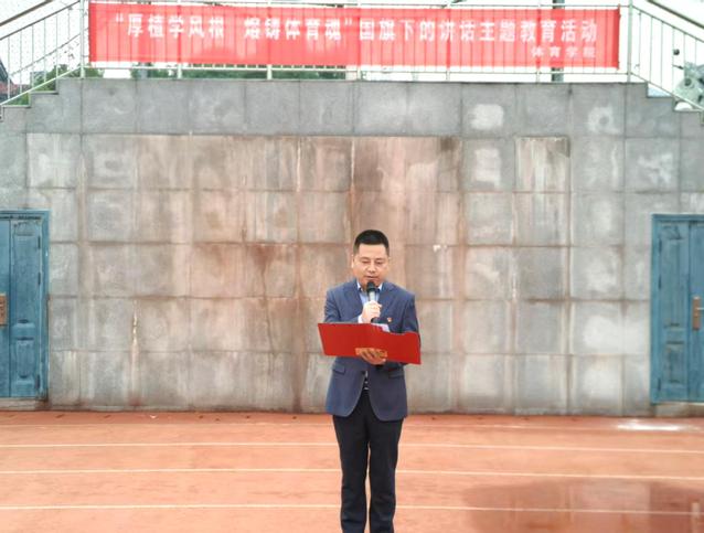 本网讯(通讯员 王晓宇)11月10日,体育学院“厚植学风根,熔铸体育魂”国旗下的讲话主题教育活动暨学风建设活动月启动仪式在综合田径场举行。体育学院党总支书记李小兵,党总支副书记蒋作栋,副院长尹开宁、潘晓波出席活动,全体辅导员、学生党员、入党积极分子及2024级、2025级全体学生参加活动。