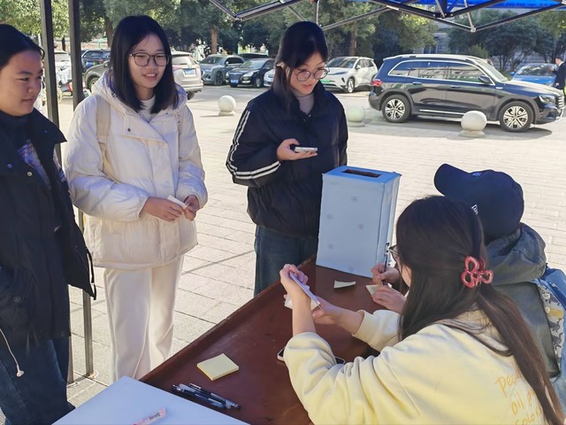 下午14:30,学生们陆陆续续开始在便签纸上写写画画,也许是他们心里藏着许许多多对老师或身边的人想说的话,所有人都低头将内心最真实的想法写在小小的一方纸上,虽不是千言万语的磅礴文字,简短的几句话也足以叙述令自己感动的瞬间:或是早八课堂上老师对学生作业的温柔注解,或是困惑时老师如春风的一句“我再讲一遍”,或是新认识的朋友在生活或学习上提供了莫大的帮助,或是令人印象深刻的课堂小趣事...记忆的片段汇成短短的几句话,浓浓的情感却蕴含其中。