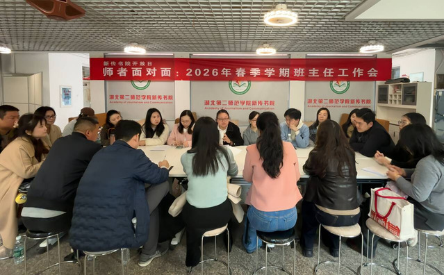 为夯实新学期育人基础,全面提升学生工作精细化、规范化水平,3月12日下午,新闻与传播学院“师者面对面”2026年春季学期班主任工作会在“一站式学生社区”新传书院顺利召开,党总支副书记邱媛、全体班主任及辅导员老师参会,共同为新学期学生工作谋思路、定方向、强落实,勾勒育人工作新蓝图。