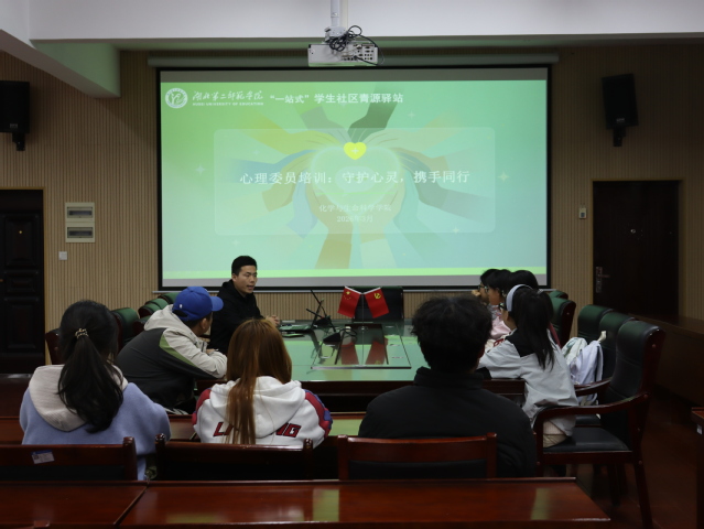 本网讯(通讯员 陈梦怡)为加强学院心理健康教育工作,明确心理委员职责,提升其心理识别与应急处置能力,充分发挥心理委员在班级心理健康工作中的“信息员、宣传员、陪伴者、联络员”作用,3月25日,化学与生命科学学院在党员活动室开展心理委员专题培训,学院专职辅导员黄世杰担任主讲,各班级心理委员、院心服中心成员参加培训。