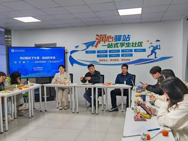 本网讯(通讯员 淡鑫)为深耕“一站式”学生社区育人阵地,推动育人力量下沉、拉近师生距离,3月26日中午,经济与管理学院(以下简称“经管学院”)在“一站式”学生社区润心驿站,举办经管茶叙·“挑战杯”专场交流活动。经管学院党委副书记李京,学生会指导老师袁博翀,学生第四党支部书记叶莹,以及晋级校赛的“挑战杯”参赛学子齐聚一堂,围坐交流、共话科创。