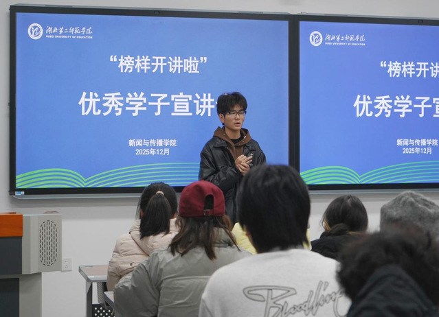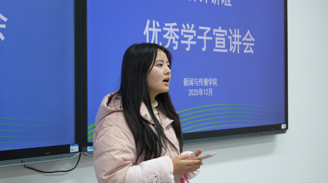 本网讯(大学生新闻宣传中心见习记者 李慧馨)为发挥优秀学子的示范引领作用,帮助25级同学明确大学成长方向、全面提升综合素质,新闻与传播学院于博雅楼513举办国家励志奖学金获得者优秀学子经验分享会,25级学生参加。