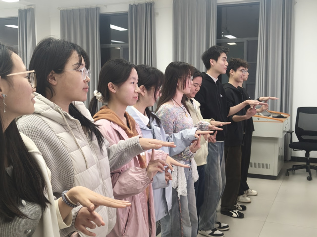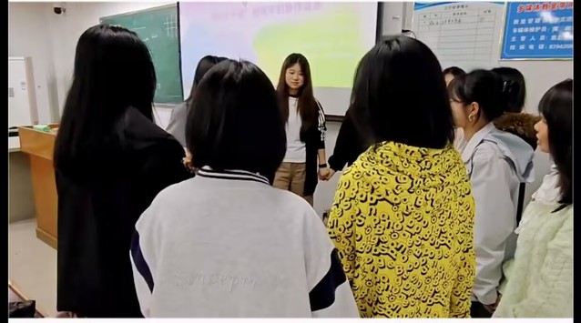 25级商务英语1班的“抓手指”暖场游戏将活动推向高潮。游戏紧扣“情绪”关键词,让学生在快速反应中体验情绪的即时变化,并通过自我夸奖环节强化积极心理暗示。“在游戏中学会欣赏自己”的标语,生动体现了心理健康教育融入趣味活动的理念。