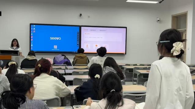 在评比展示环节,各班紧扣情绪管理、自我认知与互助成长等核心内容,设计了丰富多元的活动形式。25级英语1班带来《春季情绪调节的实用自助技巧》主题讲座,主讲人结合生动案例与科普知识,从光照运动、睡眠节律、正念技术等维度,深入浅出地讲解了情绪管理的科学方法。屏幕上寓意深刻的卡通插画,提醒大家在情绪波动中学会寻找平衡,台下同学专注聆听,互动频频。